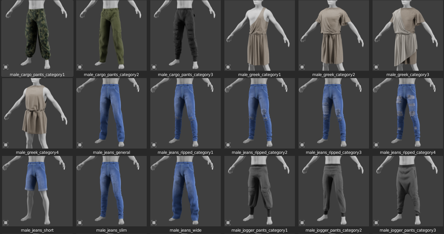 For Male (40 Objects)Jeans ★ Jogger ★ Leather jacket ★ Cargo pants ★ Shirt ★ Tank top ★ Greek ★ T-shirt ★ Japan Costume ★